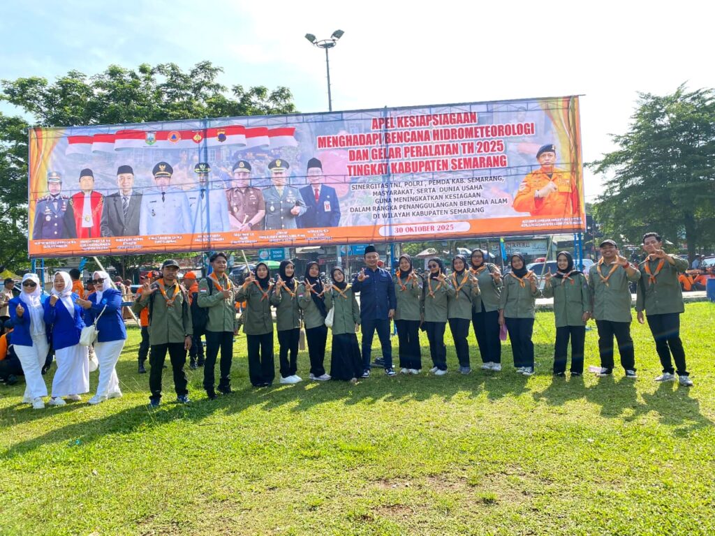 Ungaran_UKM Manata Undaris pada hari Kamis,30 Oktober 2025, dimulai pukul 07.00 WIB dan selesai pada pukul 08.30 WIB, bertempat di Alun–Alun Bung Karno, Kalirejo, Ungaran Timur, Kabupaten Semarang, telah dilaksanakan kegiatan Apel Gelar Kesiapsiagaan Menghadapi Bencana Hidrometeorologi dan Gelar Peralatan Tahun 2025. Kegiatan ini diikuti oleh berbagai unsur dari DPRD Kabupaten Semarang, TNI (Koramil) Se-Kabupaten Semarang, Polri (Polsek) Se-Kabupaten Semarang, BPBD, OPD, Relawan, dan Organisasi Kebencanaan serta Organisasi Masyarakat se-Kabupaten Semarang, berkumpul banyak di alun – alun Bung Karno, Ungaran, Kabupaten Semarang.