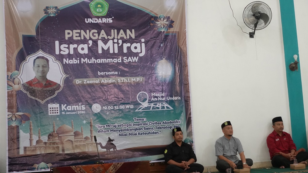 Mengusung tema “Isra’ Mi’raj sebagai Inspirasi Civitas Akademika dalam Menyeimbangkan Sains, Teknologi, dan Nilai-Nilai Ketauhidan”, kegiatan ini bertujuan untuk memperkuat spiritualitas serta menanamkan nilai-nilai keislaman dalam kehidupan akademik dan profesional sivitas UNDARIS.